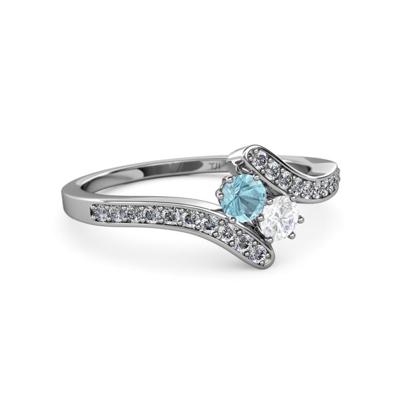 Aquamarine and White Sapphire 2 Stone with Side Diamonds Womens Bypass Engagement Ring 0.69 ctw 14K White Gold More Details ...