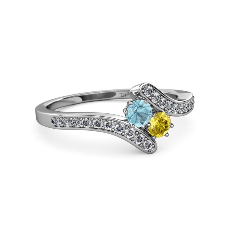 Designed with a meaningful expression of love, this Ring have mesmerizing combination of Aquamarine & Yellow Sapphire which represents you & your loved one embraced by fascinating Diamond bypass shank symbolizing that your life revolves around each other.