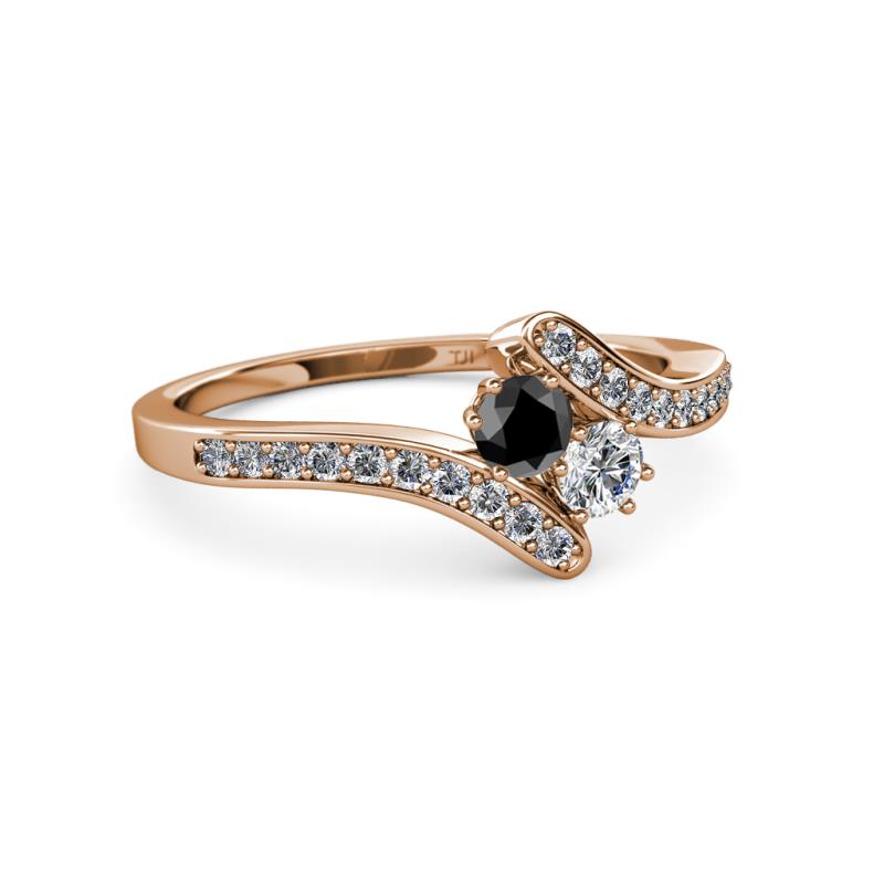 Black and White Diamond 2 Stone with Side Diamonds Womens Bypass Engagement Ring 0.71 ctw 14K Rose Gold More Details ...