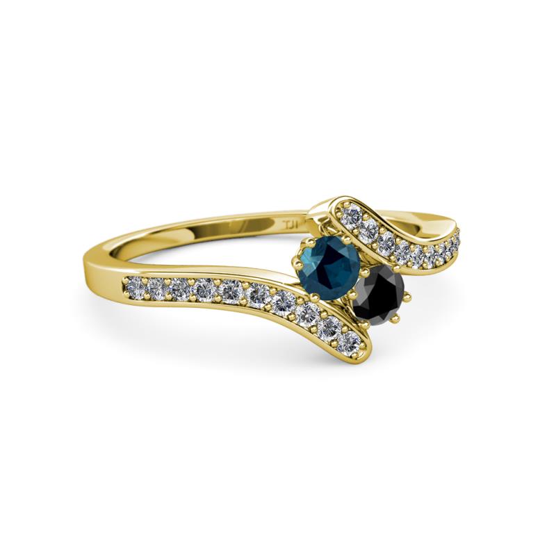 Blue and Black Diamond 2 Stone with Side Diamonds Womens Bypass Engagement Ring 0.71 ctw 14K Yellow Gold More Details ...