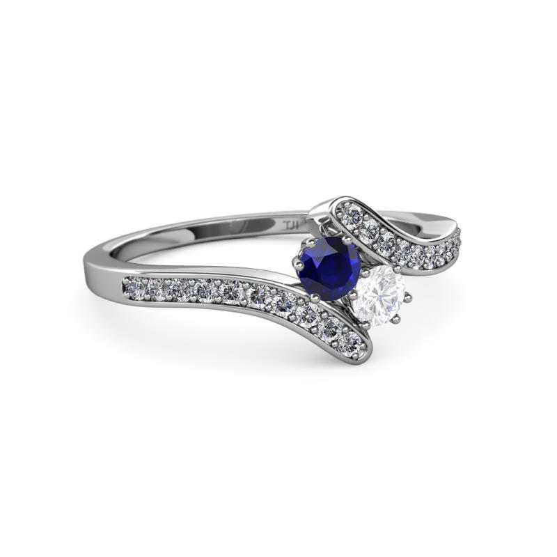 Designed with a meaningful expression of love, this Ring have mesmerizing combination of Blue Sapphire & White Sapphire which represents you & your loved one embraced by fascinating Diamond bypass shank symbolizing that your life revolves around each other.