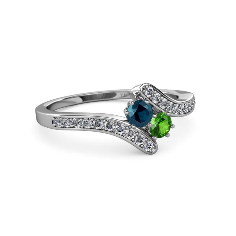 Blue Diamond and Green Garnet 2 Stone with Side Diamonds Womens Bypass Engagement Ring 0.73 ctw 14K White Gold More Details ...
