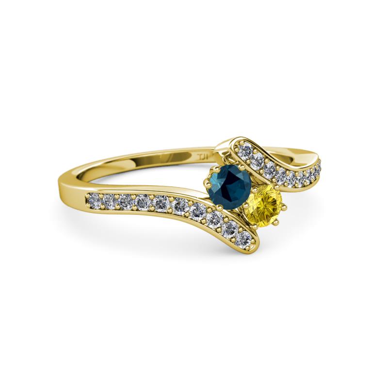 Blue Diamond and Yellow Sapphire 2 Stone with Side Diamonds Womens Bypass Engagement Ring 0.71 ctw 14K Yellow Gold More Details ...