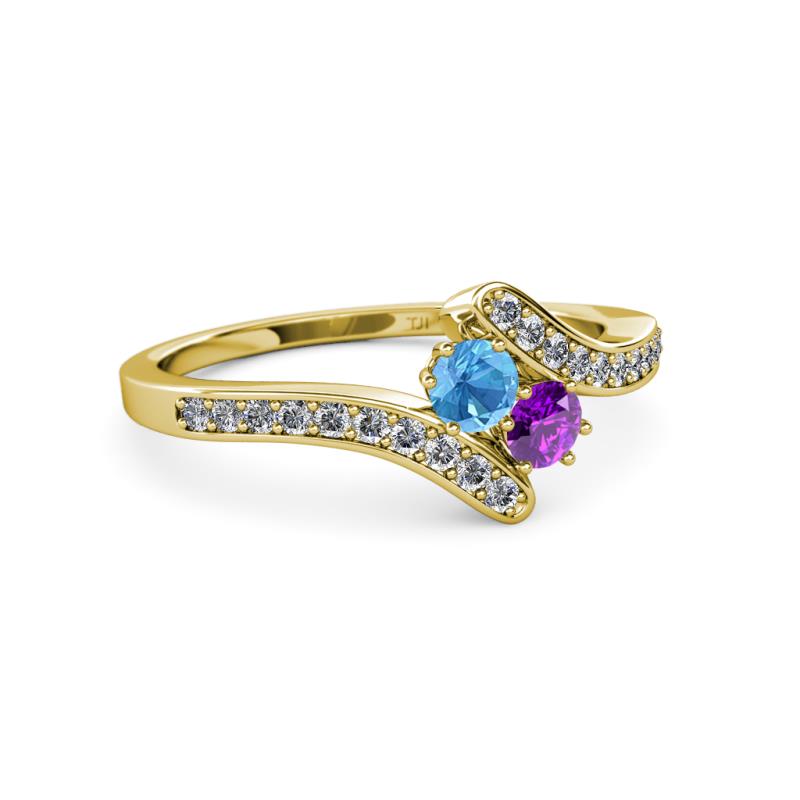 Designed with a meaningful expression of love, this Ring have mesmerizing combination of Blue Topaz & Amethyst which represents you & your loved one embraced by fascinating Diamond bypass shank symbolizing that your life revolves around each other.