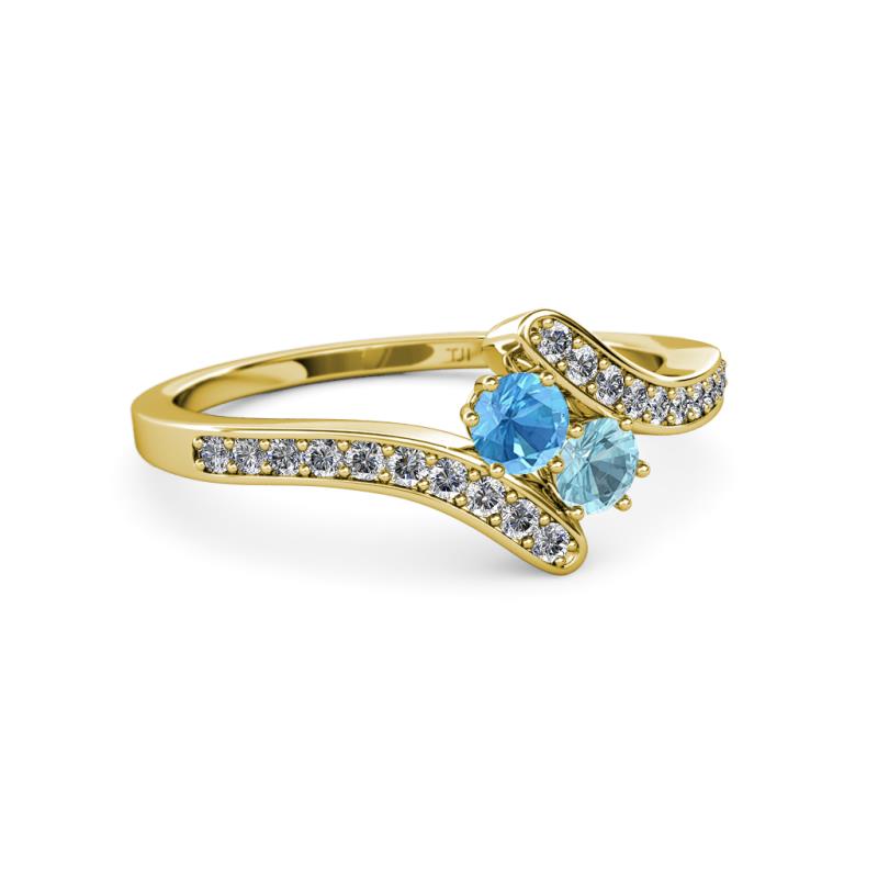 Blue Topaz and Aquamarine 2 Stone with Side Diamonds Womens Bypass Engagement Ring 0.70 ctw 14K Yellow Gold More Details ...