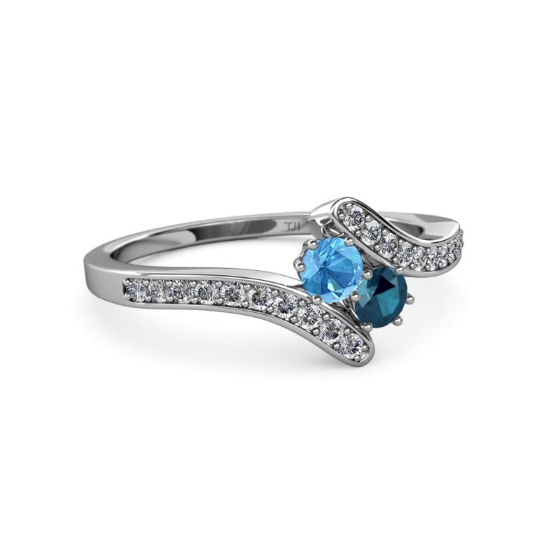 Blue Topaz and Blue Diamond 2 Stone with Side Diamonds Womens Bypass Engagement Ring 0.72 ctw 14K White Gold More Details ...