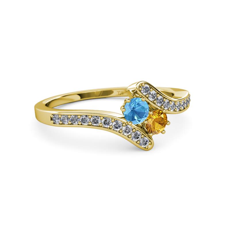 Blue Topaz and Citrine 2 Stone with Side Diamonds Womens Bypass Engagement Ring 0.70 ctw 14K Yellow Gold More Details ...