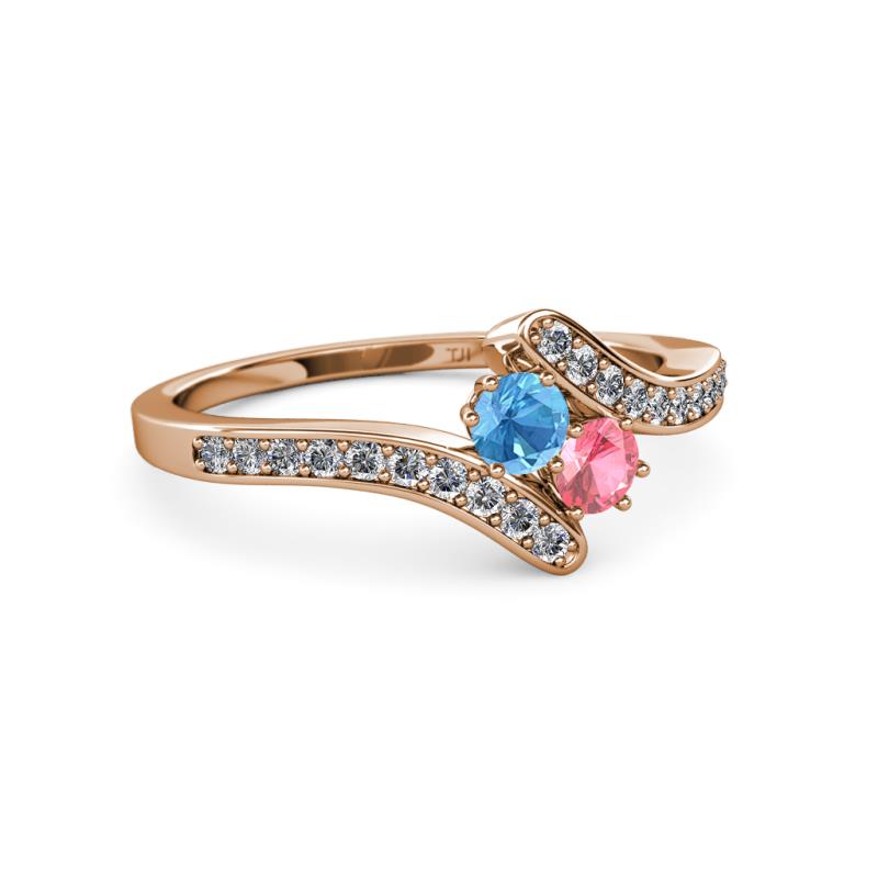 Blue Topaz and Pink Tourmaline 2 Stone with Side Diamonds Womens Bypass Engagement Ring 0.70 ctw 14K Rose Gold More Details ...