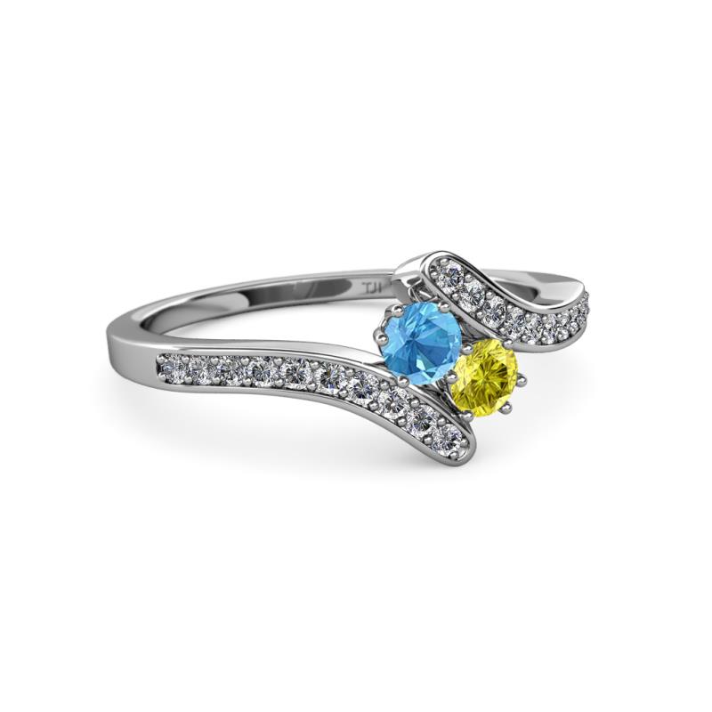 Blue Topaz and Yellow Diamond 2 Stone with Side Diamonds Womens Bypass Engagement Ring 0.72 ctw 14K White Gold More Details ...