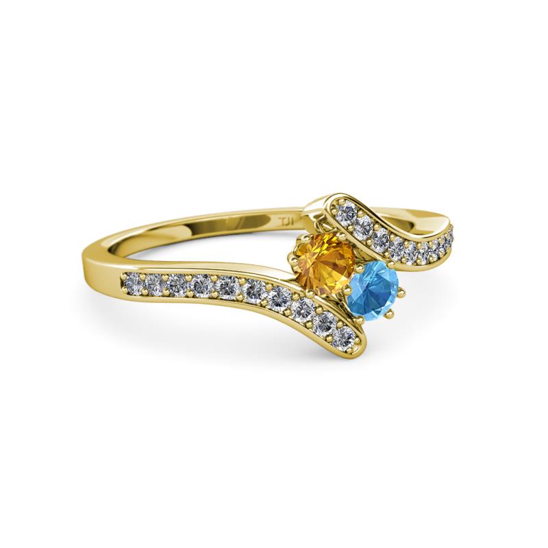 Citrine and Blue Topaz 2 Stone with Side Diamonds Womens Bypass Engagement Ring 0.70 ctw 14K Yellow Gold More Details ...