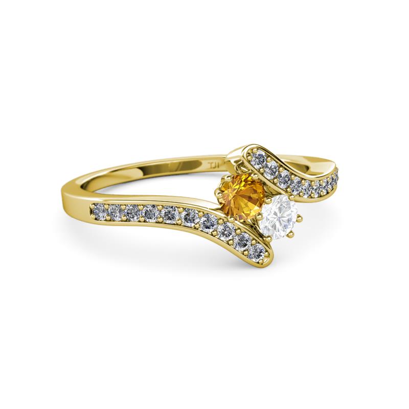 Designed with a meaningful expression of love, this Ring have mesmerizing combination of Citrine & White Sapphire which represents you & your loved one embraced by fascinating Diamond bypass shank symbolizing that your life revolves around each other.
