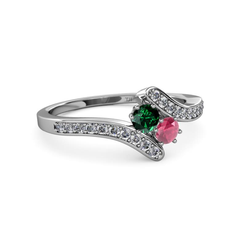Emerald and Rhodolite Garnet 2 Stone with Side Diamonds Womens Bypass Engagement Ring 0.71 ctw 14K White Gold More Details ...