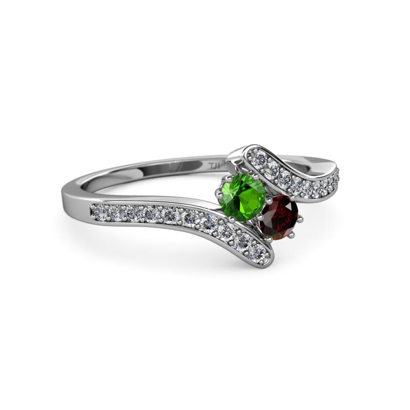 Designed with a meaningful expression of love, this Ring have mesmerizing combination of Green Garnet & Red Garnet which represents you & your loved one embraced by fascinating Diamond bypass shank symbolizing that your life revolves around each other.