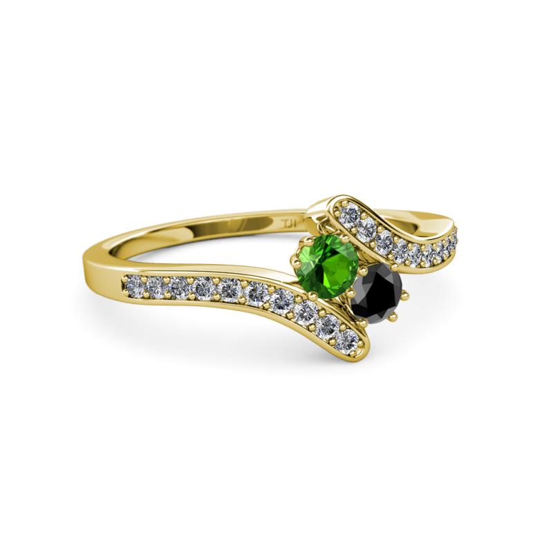 Green Garnet and Black Diamond 2 Stone with Side Diamonds Womens Bypass Engagement Ring 0.74 ctw 14K Yellow Gold More Details ...