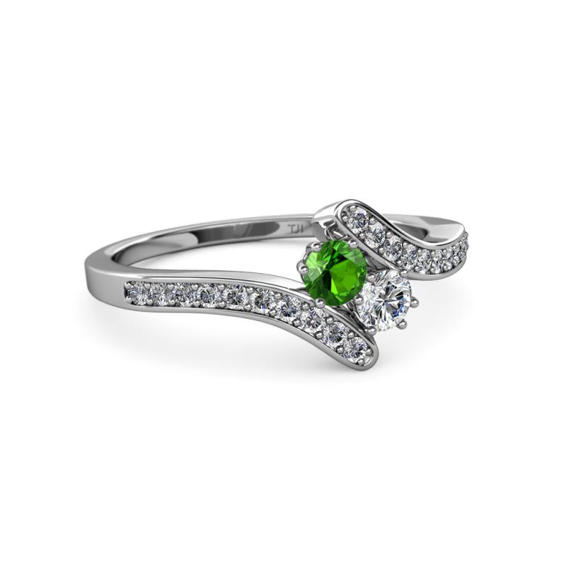 Green Garnet and Diamond 2 Stone with Side Diamonds Womens Bypass Engagement Ring 0.73 ctw 14K White Gold More Details ...