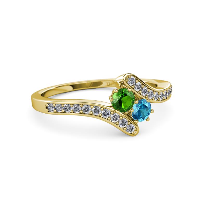Designed with a meaningful expression of love, this Ring have mesmerizing combination of Green Garnet & London Blue Topaz which represents you & your loved one embraced by fascinating Diamond bypass shank symbolizing that your life revolves around each other.