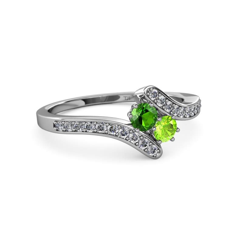 Green Garnet and Peridot 2 Stone with Side Diamonds Womens Bypass Engagement Ring 0.76 ctw 14K White Gold More Details ...