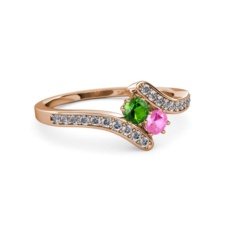 Green Garnet and Pink Sapphire 2 Stone with Side Diamonds Womens Bypass Engagement Ring 0.74 ctw 14K Rose Gold More Details ...