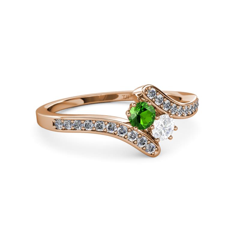 Green Garnet and White Sapphire 2 Stone with Side Diamonds Womens Bypass Engagement Ring 0.74 ctw 14K Rose Gold More Details ...