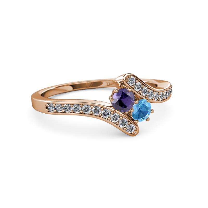Designed with a meaningful expression of love, this Ring have mesmerizing combination of Iolite & Blue Topaz which represents you & your loved one embraced by fascinating Diamond bypass shank symbolizing that your life revolves around each other.