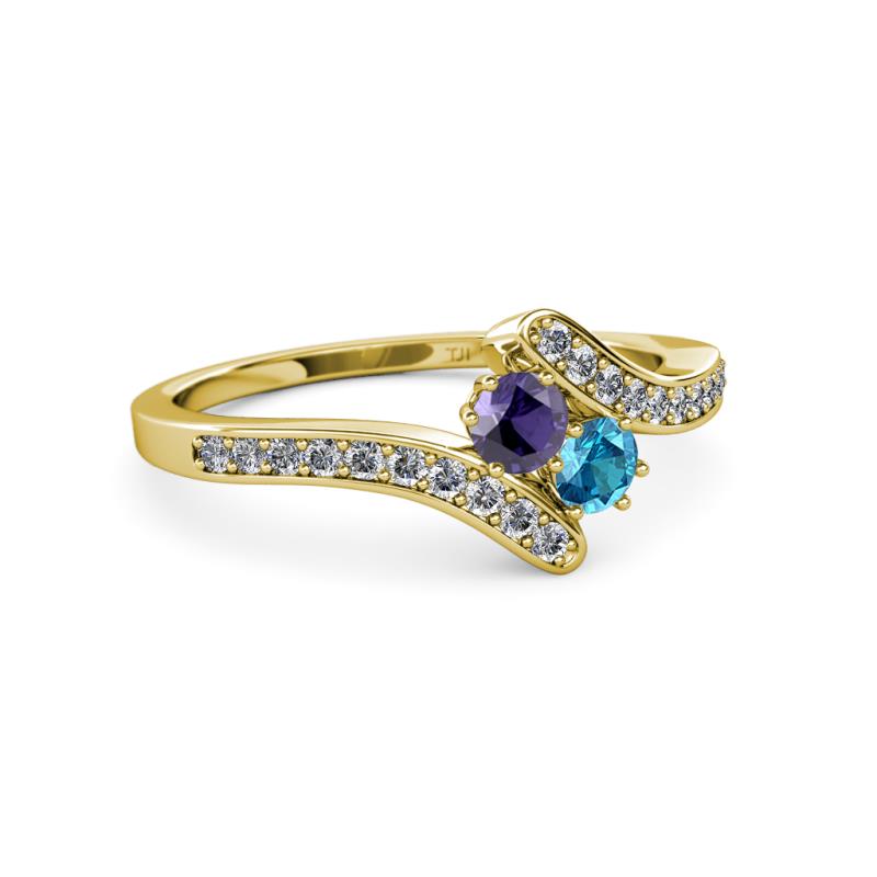 Iolite and London Blue Topaz 2 Stone with Side Diamonds Womens Bypass Engagement Ring 0.70 ctw 14K Yellow Gold More Details ...