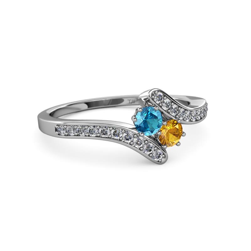London Blue Topaz and Citrine 2 Stone with Side Diamonds Womens Bypass Engagement Ring 0.70 ctw 14K White Gold More Details ...