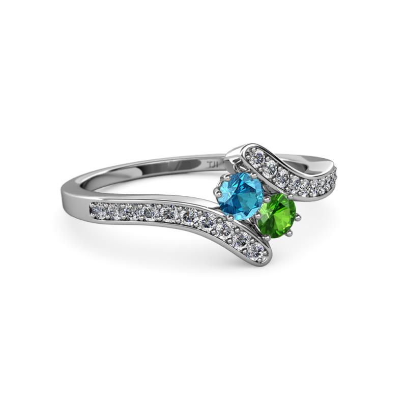 London Blue Topaz and Green Garnet 2 Stone with Side Diamonds Womens Bypass Engagement Ring 0.75 ctw 14K White Gold More Details ...