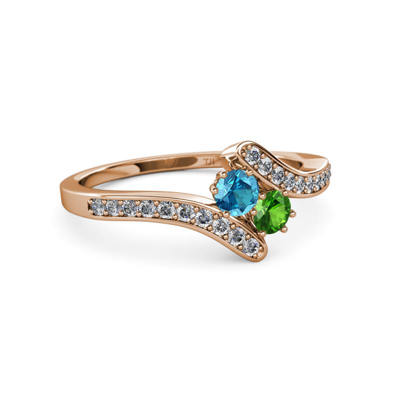 London Blue Topaz and Green Garnet 2 Stone with Side Diamonds Womens Bypass Engagement Ring 0.75 ctw 14K Rose Gold More Details ...