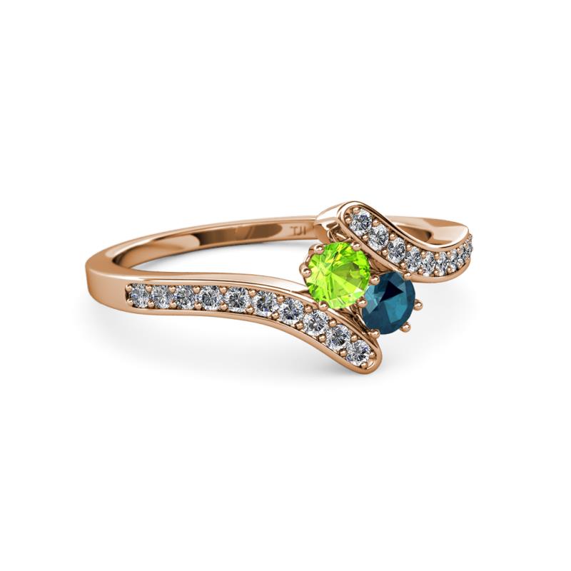 Peridot and Blue Diamond 2 Stone with Side Diamonds Womens Bypass Engagement Ring 0.73 ctw 14K Rose Gold More Details ...