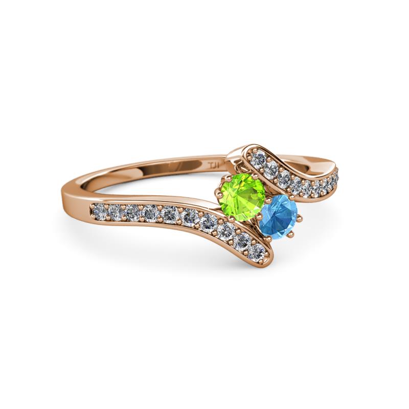 Peridot and Blue Topaz 2 Stone with Side Diamonds Womens Bypass Engagement Ring 0.75 ctw 14K Rose Gold More Details ...