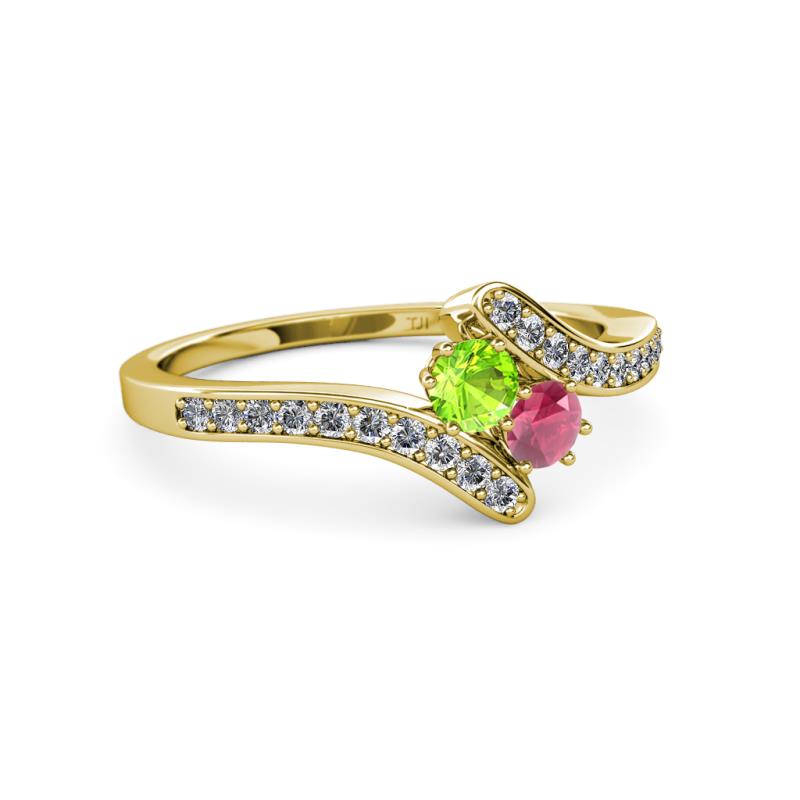 Peridot and Rhodolite Garnet 2 Stone with Side Diamonds Womens Bypass Engagement Ring 0.76 ctw 14K Yellow Gold More Details ...