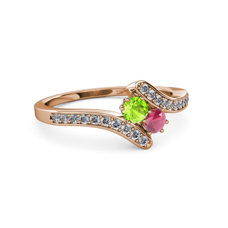 Peridot and Rhodolite Garnet 2 Stone with Side Diamonds Womens Bypass Engagement Ring 0.76 ctw 14K Rose Gold More Details ...
