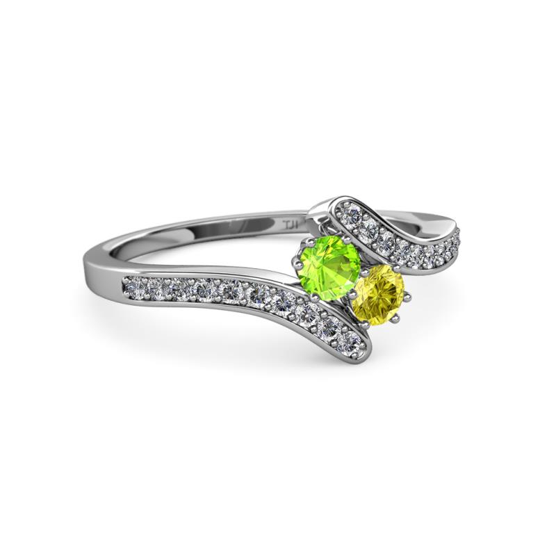 Peridot and Yellow Diamond 2 Stone with Side Diamonds Womens Bypass Engagement Ring 0.73 ctw 14K White Gold More Details ...