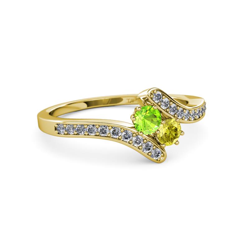Peridot and Yellow Diamond 2 Stone with Side Diamonds Womens Bypass Engagement Ring 0.73 ctw 14K Yellow Gold More Details ...