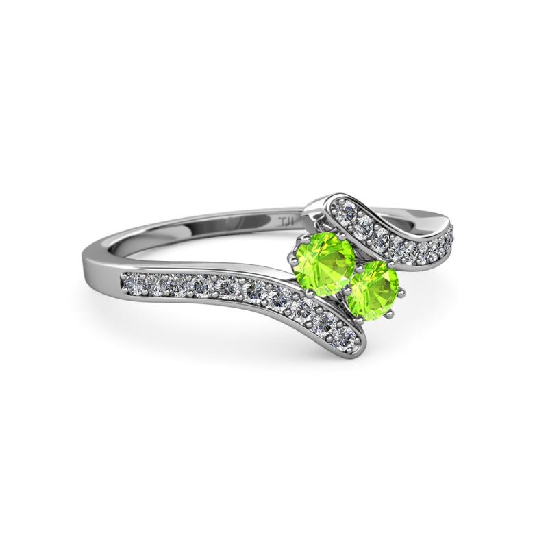 Peridot 2 Stone with Side Diamonds Womens Bypass Engagement Ring 0.76 ctw 14K White Gold More Details ...
