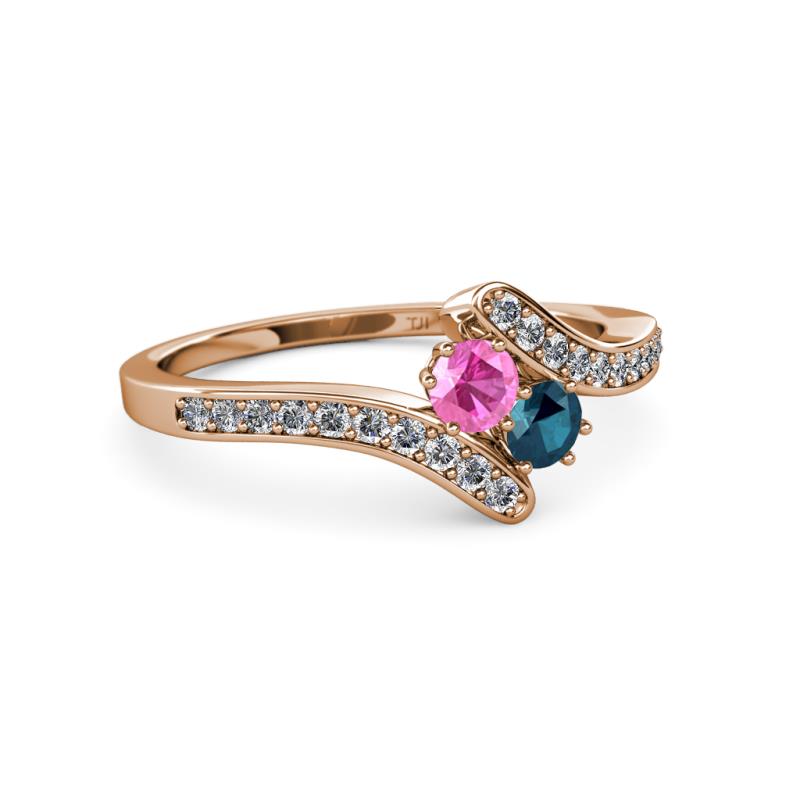 Pink Sapphire and Blue Diamond 2 Stone with Side Diamonds Womens Bypass Engagement Ring 0.71 ctw 14K Rose Gold More Details ...