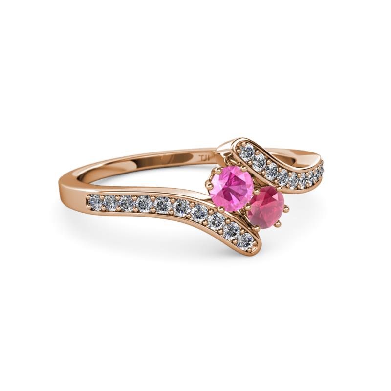 Designed with a meaningful expression of love, this Ring have mesmerizing combination of Pink Sapphire & Rhodolite Garnet which represents you & your loved one embraced by fascinating Diamond bypass shank symbolizing that your life revolves around each other.