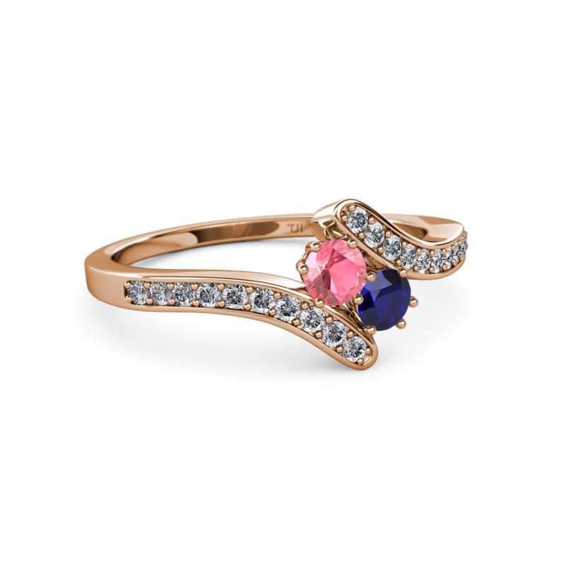 Pink Tourmaline and Blue Sapphire 2 Stone with Side Diamonds Womens Bypass Engagement Ring 0.69 ctw 14K Rose Gold More Details ...