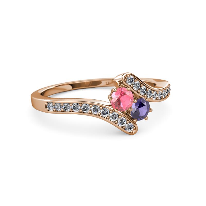 Designed with a meaningful expression of love, this Ring have mesmerizing combination of Pink Tourmaline & Iolite which represents you & your loved one embraced by fascinating Diamond bypass shank symbolizing that your life revolves around each other.