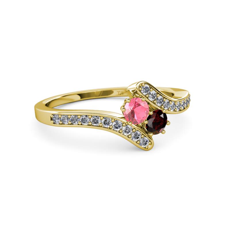 Pink Tourmaline and Red Garnet 2 Stone with Side Diamonds Womens Bypass Engagement Ring 0.71 ctw 14K Yellow Gold More Details ...