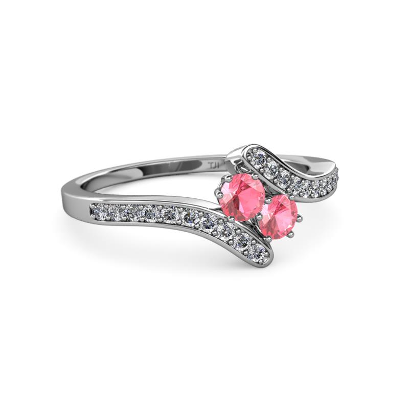 Pink Tourmaline 2 Stone with Side Diamonds Womens Bypass Engagement Ring 0.66 ctw 14K White Gold More Details ...