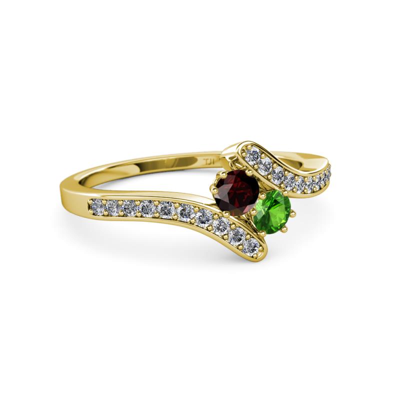 Red and Green Garnet 2 Stone with Side Diamonds Womens Bypass Engagement Ring 0.76 ctw 14K Yellow Gold More Details ...