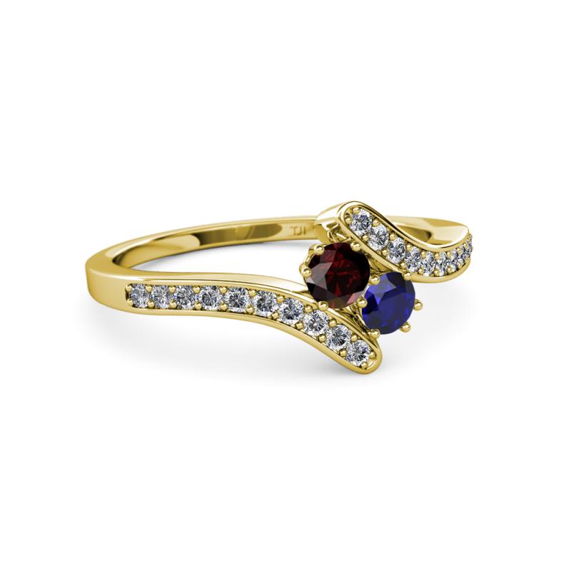 Red Garnet and Blue Sapphire 2 Stone with Side Diamonds Womens Bypass Engagement Ring 0.74 ctw 14K Yellow Gold More Details ...