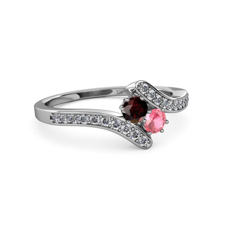 Red Garnet and Pink Tourmaline 2 Stone with Side Diamonds Womens Bypass Engagement Ring 0.71 ctw 14K White Gold More Details ...