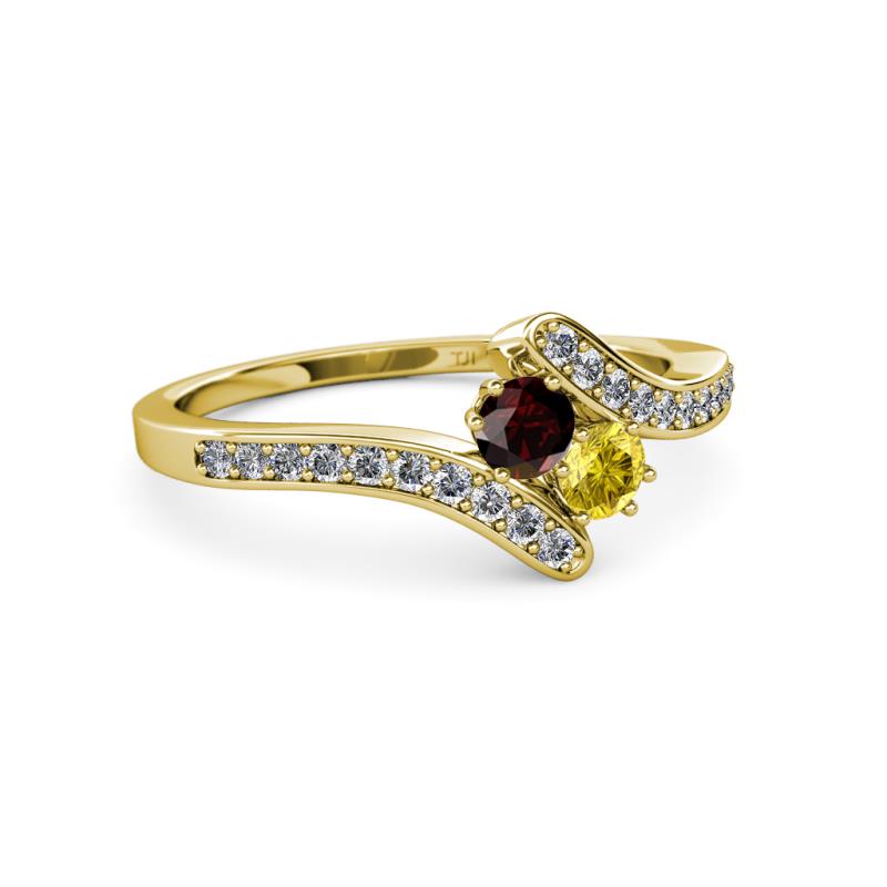 Designed with a meaningful expression of love, this Ring have mesmerizing combination of Red Garnet & Yellow Sapphire which represents you & your loved one embraced by fascinating Diamond bypass shank symbolizing that your life revolves around each other.