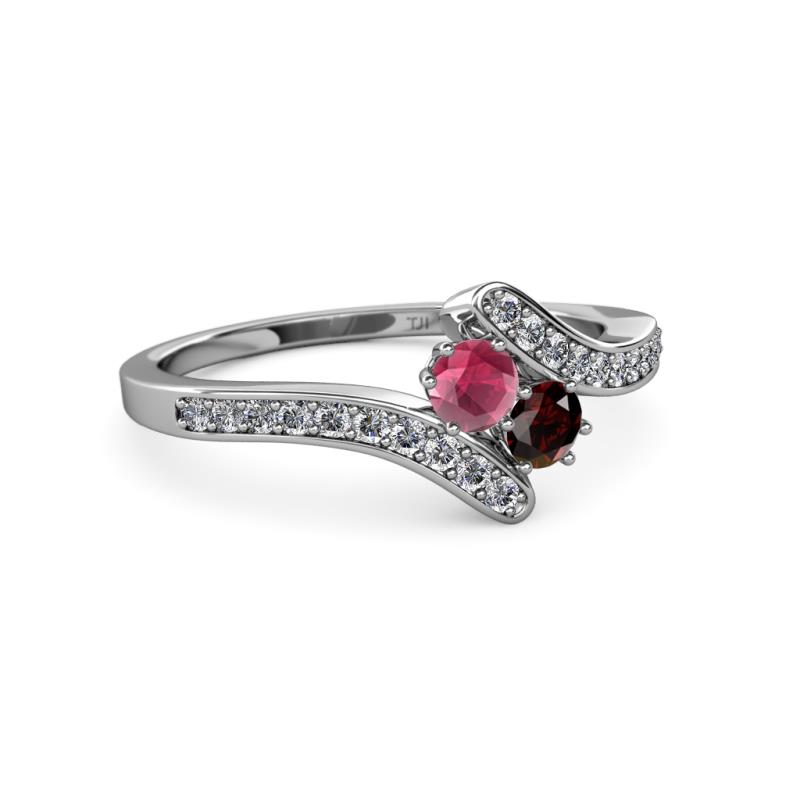 Rhodolite and Red Garnet 2 Stone with Side Diamonds Womens Bypass Engagement Ring 0.76 ctw 14K White Gold More Details ...