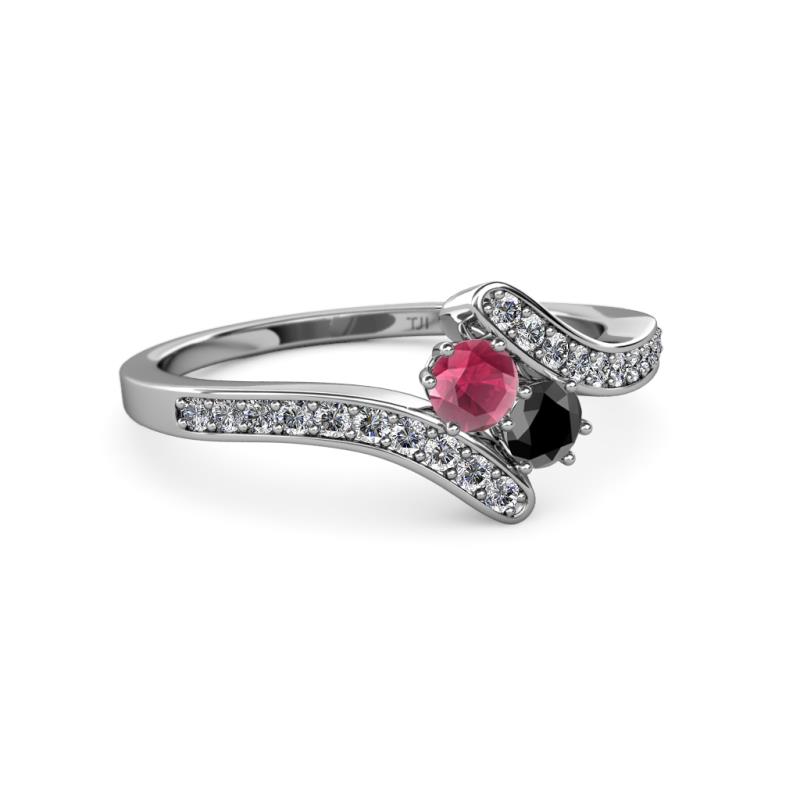 Rhodolite Garnet and Black Diamond 2 Stone with Side Diamonds Womens Bypass Engagement Ring 0.74 ctw 14K White Gold More Details ...