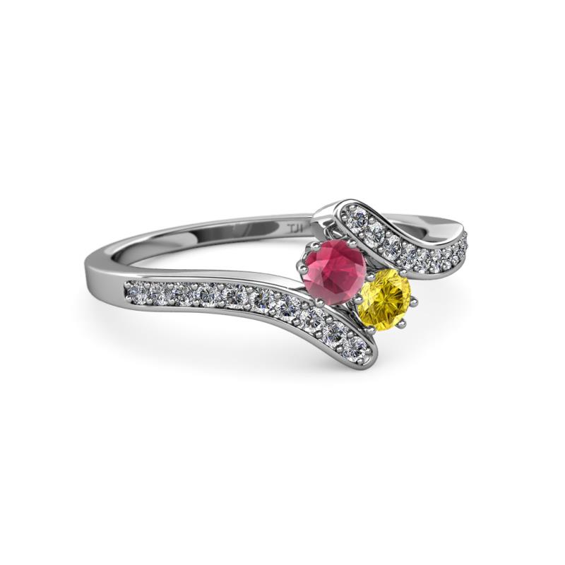 Designed with a meaningful expression of love, this Ring have mesmerizing combination of Rhodolite Garnet & Yellow Sapphire which represents you & your loved one embraced by fascinating Diamond bypass shank symbolizing that your life revolves around each other.