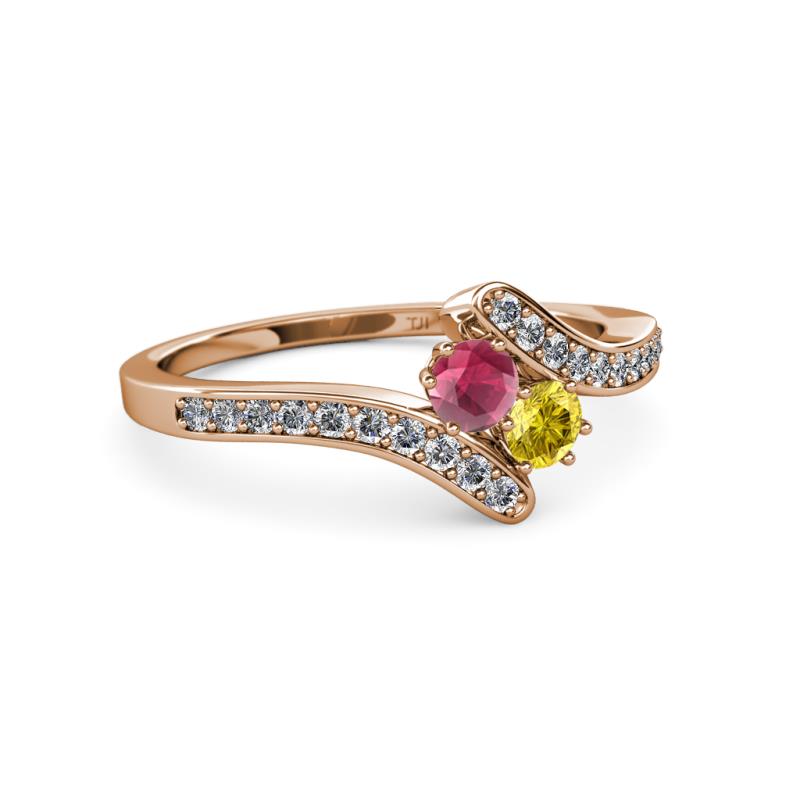 Rhodolite Garnet and Yellow Sapphire 2 Stone with Side Diamonds Womens Bypass Engagement Ring 0.74 ctw 14K Rose Gold More Details ...