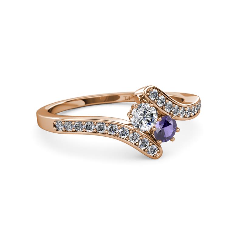 Round Diamond and Iolite 2 Stone with Side Diamonds Bypass Engagement Ring 0.68 Carat tw in 14K Rose Gold. More Details ...